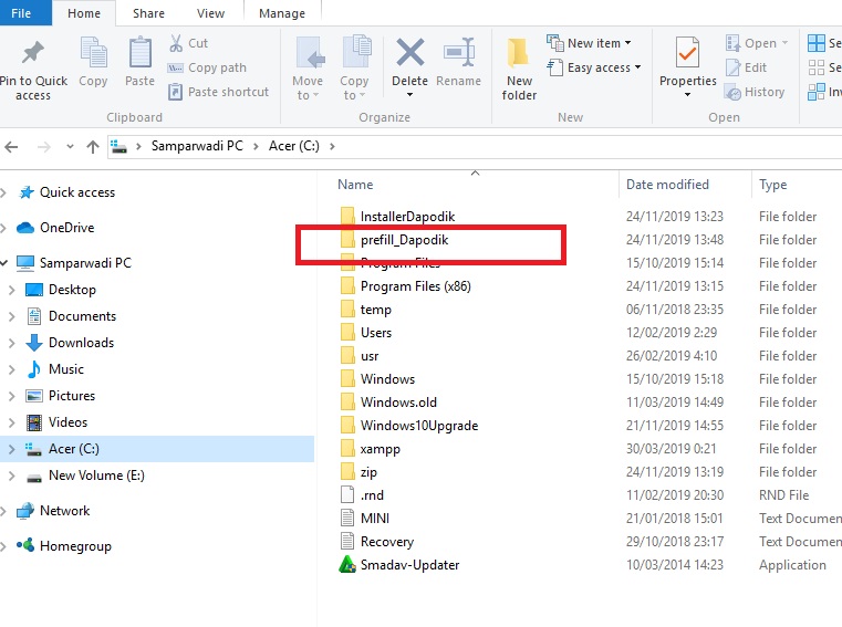 4. File Prefil Tersebut di simpan di Local C dan pilih Prefill Dapodik